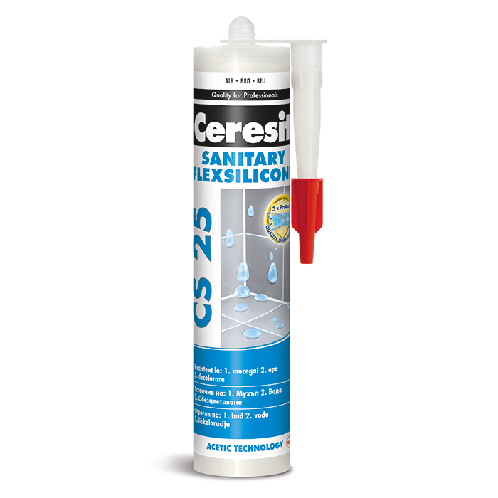 Ceresit CS 25 Sanitary este un silicon de etanșare acetoxy pentru etanșarea obiectelor sanitare sau a altor aplicații de etanșare necesare în construcții acolo unde se impune o rezistență sporită la acțiunea mucegaiului.